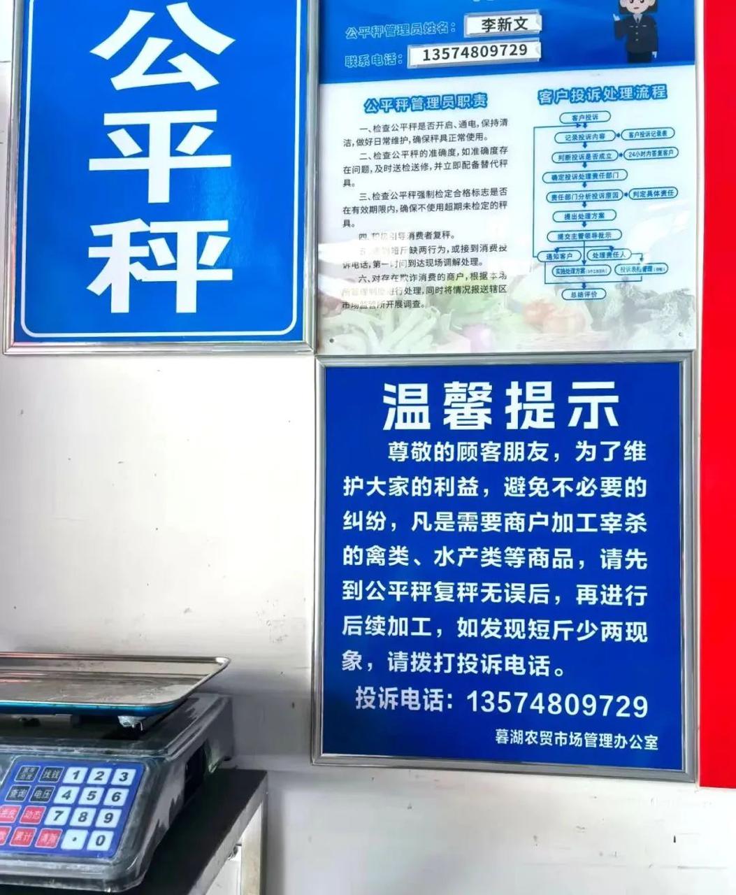 此外,天心区市场监管局增配了41台公平秤,按照需求投放至全区20个农贸市场,并张贴“先复秤,再加工”的温馨提示引导市民主动维权。