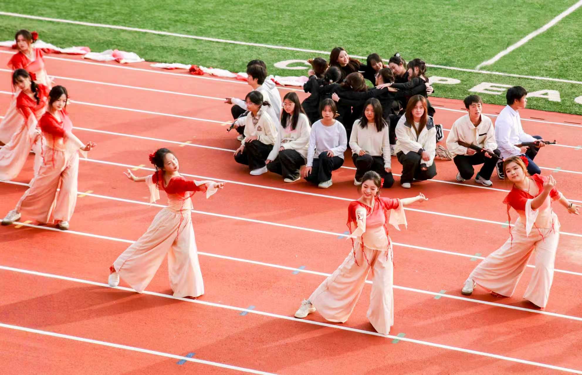 本次运动会以“阳光体育,靓丽青春”为主题。在入场式中,各二级学院运动员们还为现场观众献上了一场精彩纷呈的视觉盛宴。马克思主义学院的学子们执绸扇而来,以“赤韵”为热血注色,以“象行”铸拼搏之姿惊艳全场。管理学院带来的舞蹈《九州同》,将古典的底蕴与青春的脉搏同频,大气的力量与柔美的韵致交融,她们身穿一袭赤衣,如旭日映山河,手执一把长扇,似长风卷云霄。音乐与舞蹈学院带来舞蹈《sunshine》,她们用流畅线条勾勒活力,明快节奏传递热诚。其余13个学院也带来了精彩绝伦的表演,赢得了师生一致好评,现场欢呼与掌声交织在一起,持久不断。