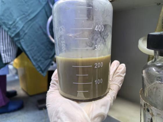 在血糖控制稳定后,黄佼主任团队为患者实施了彩超引导下的阴道内镜下宫颈管粘连分离及脓液引流术,术中发现患者阴道萎缩环状缩窄明显、宫颈管严重粘连,内镜下分离粘连后发现宫腔内积聚大量黄绿色、带有腥臭味的脓液。经过精心操作,成功引流出脓液约250ml。术后患者神志逐渐清醒,血压回升,血糖稳定,感染指标明显下降。